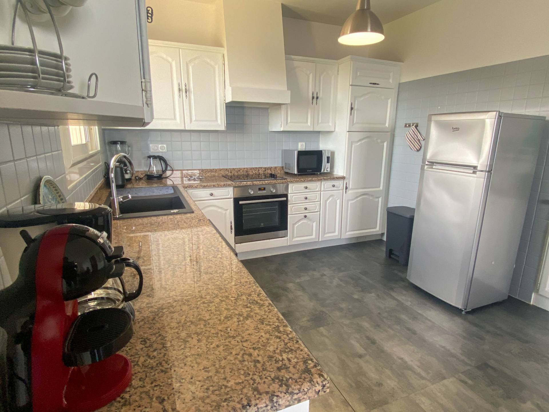 - Trois lits double (140×200) dans les trois chambres avec grands placards de rangement.
